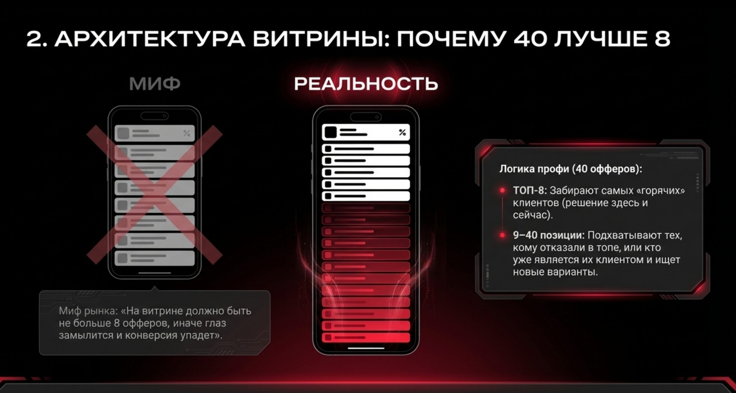 Архитектура витрины: почему 40 офферов лучше 8