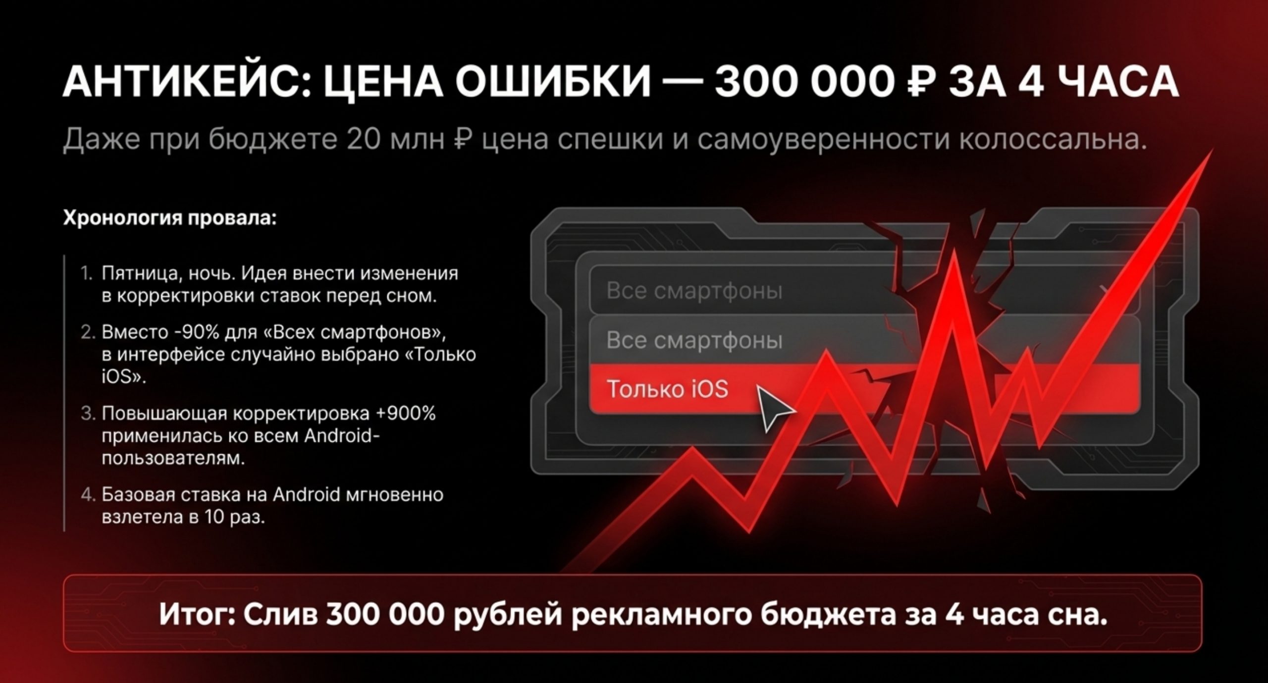 Результат — слив 300 000 рублей за 4 часа.