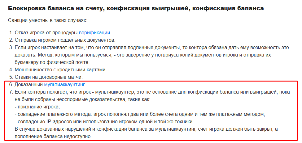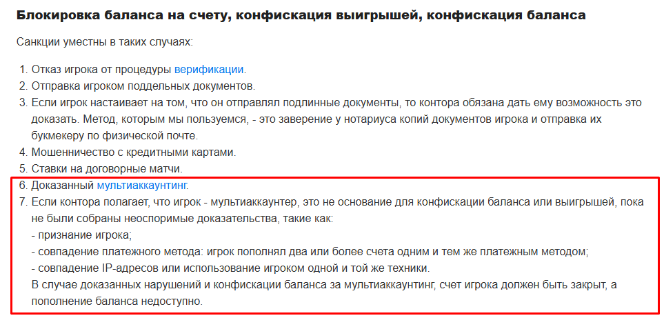 Интересно и то, что правила по работе с мультиаккаунтингом на сайте РБ поменялись буквально во время написания этой статьи. После того как мы начали задавать неудобные вопросы. Ранее действовала система, при которой игрока лишали баланса или выигрыша при неоспоримых доказательствах, а речи про возврат депозита не было вообще.