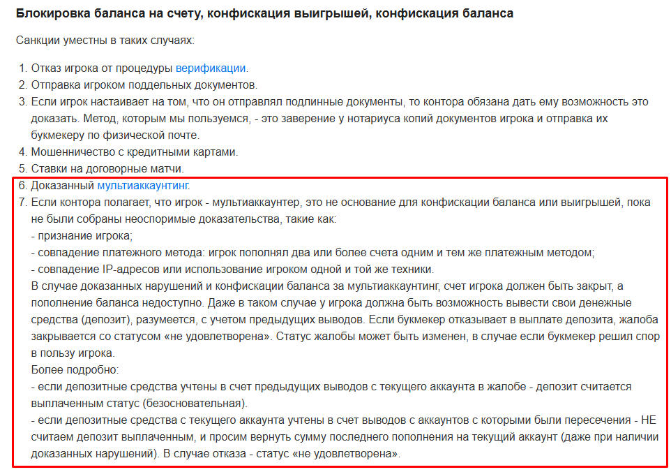 Сейчас же правила иные. Даже при доказанных нарушениях, если игрок не признает мультиакк, он имеет право требовать возврата депозита. Правила в таком виде, с уточнениями про покрытие депозитов между аккаунтами, статусами жалоб и разбором пересечений, были добавлены на сайт существенно позже. Рейтинг сделал это уже после конфликта. Фактически они задним числом подвели базу под действия и решения своих менеджеров.