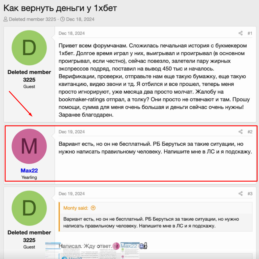 - в случае отказа букмекерской конторе понижают рейтинг и заносят в черный список РБ, лишая возможности отвечать на жалобы.