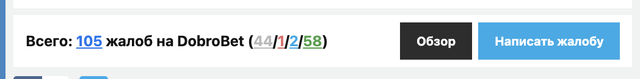 Dobro.Bet попали в черный список, их рейтинг на площадке снизился практически до минимума. Но главное — их лишили возможности отвечать на жалобы и решать вопросы, возникающие у игроков. А вот принимать их РБ не перестал, зная, как это отразится на статистике букмекера.