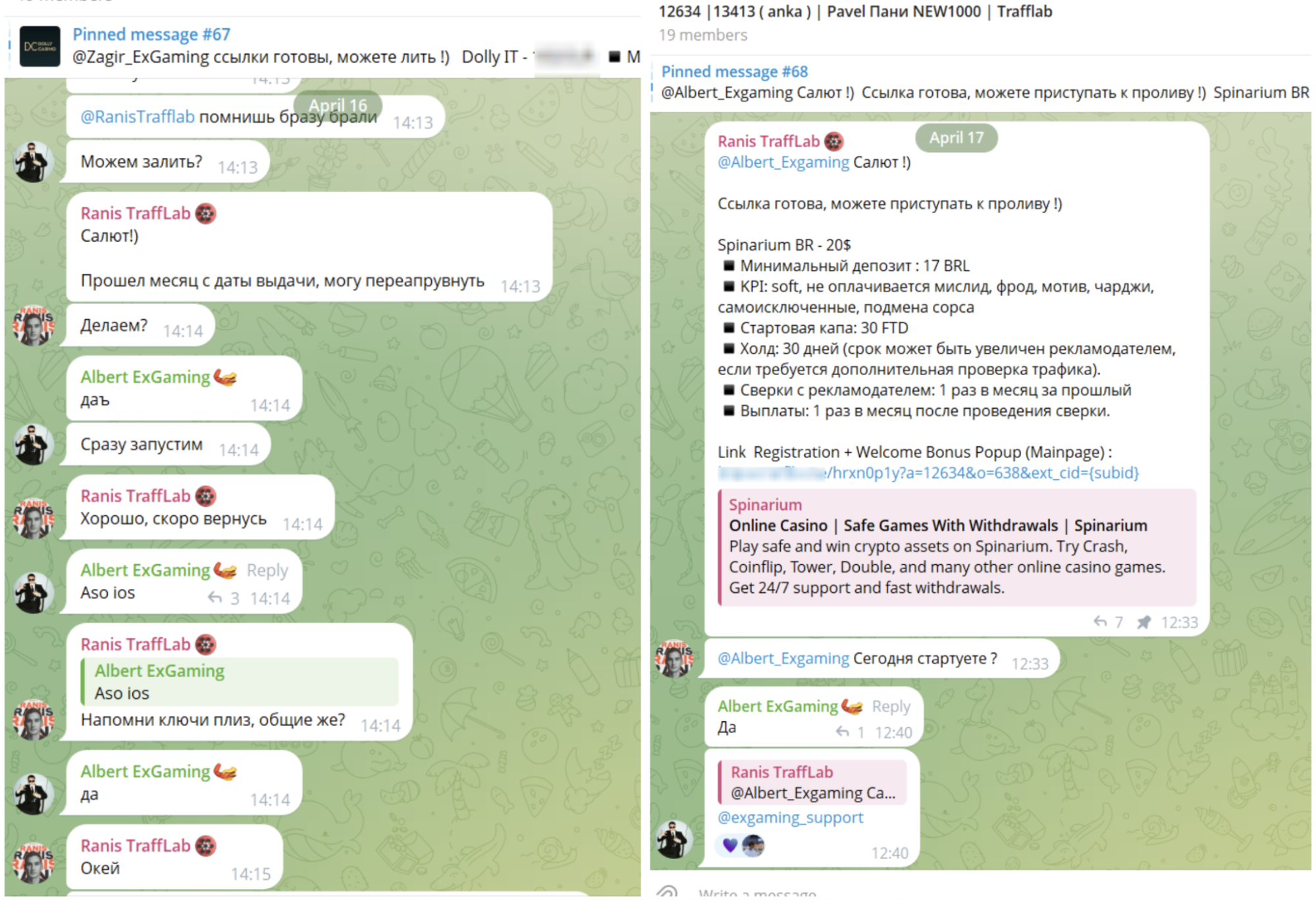Но 17 апреля Trafflab, договорились о новом оффере с ExGaming — 30 FTD из Бразилии под ASO iOS. В этот же день выдали трек-ссылку и договорились, что залив начнут в этот же день.