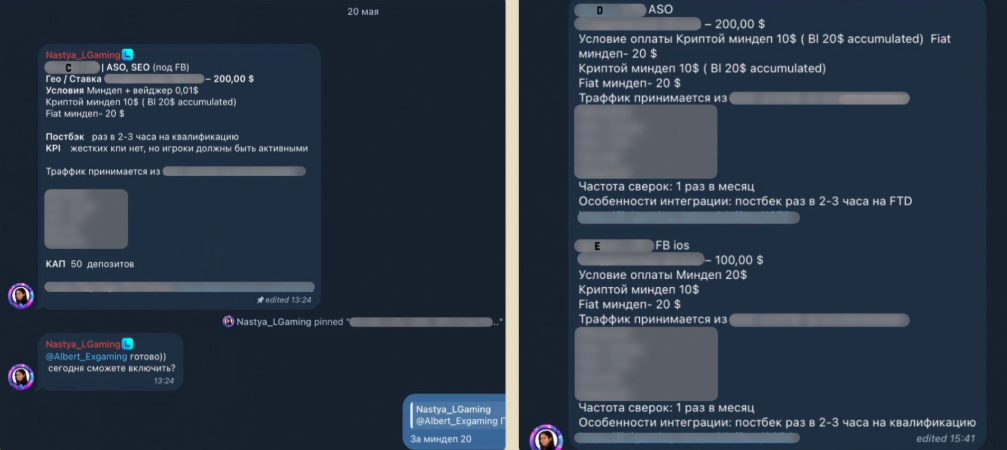 В мае у рекламодателя начались проблемы с платежми и капами, поэтому LGaming предложили 3 новых оффера. Условия были следующие.