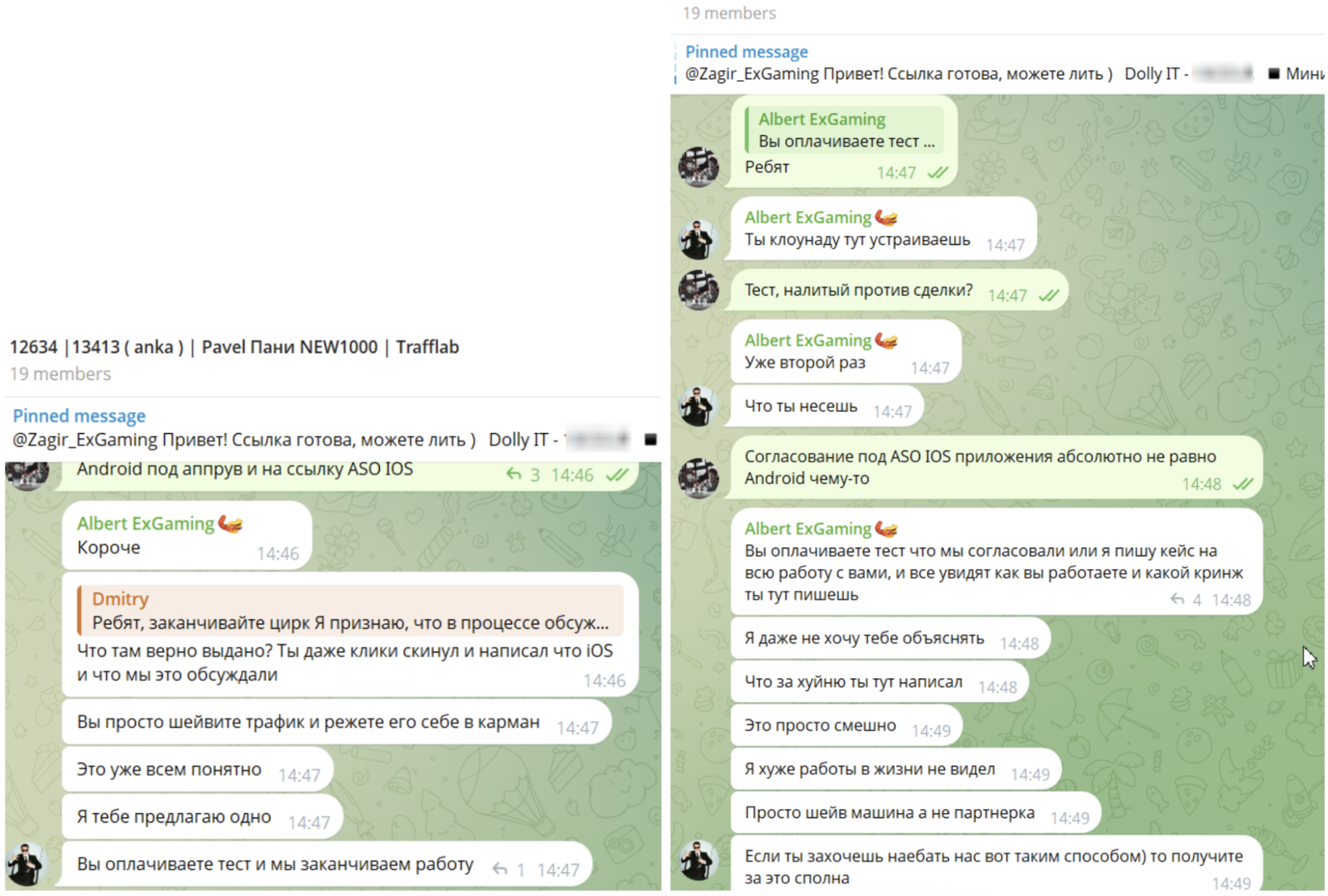 Дальше ExGaming перешли на оскорбления и угрозы: «Вы оплачиваете тест, что мы согласовали, или я пишу кейс».