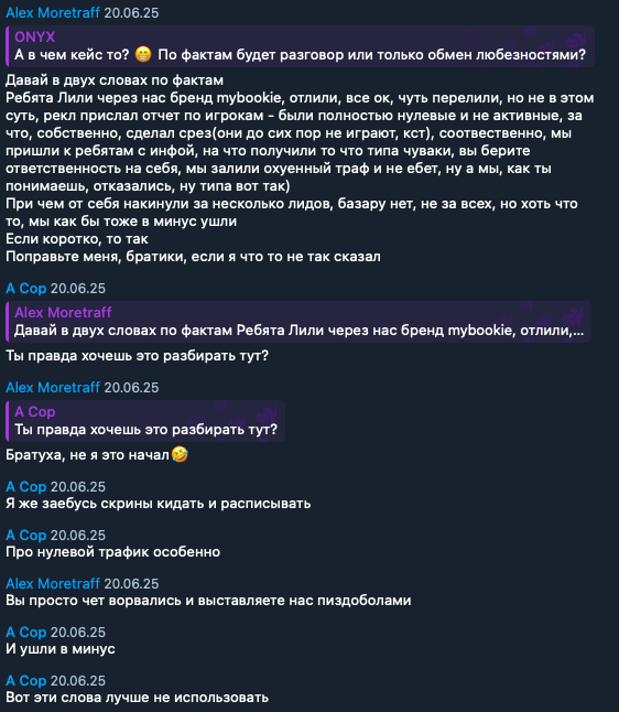 Если в первом кейсе ExGaming можно было списать косяки на неопытность, то здесь все иначе. Это уже не ошибка, а откровенное раздолбайство и попытка выбить деньги любой ценой. Они залили трафик не на тот сорс, перелили капу втрое и, вместо того чтобы признать проблему, начали оскорблять, унижать, вымогать выплаты.