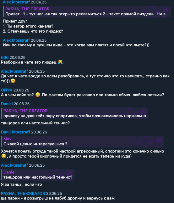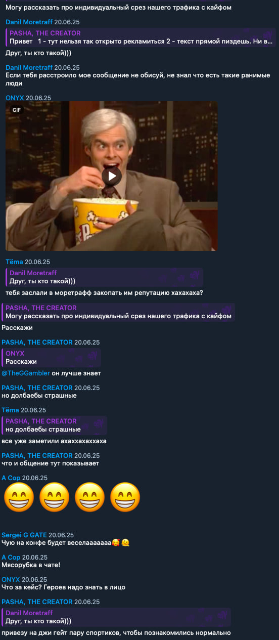 После этого диалог зашел за минус MoreTraff, но ни к чему не привел. В итоге все списали в шутку и договорились выпить вместе вина на G GATE.