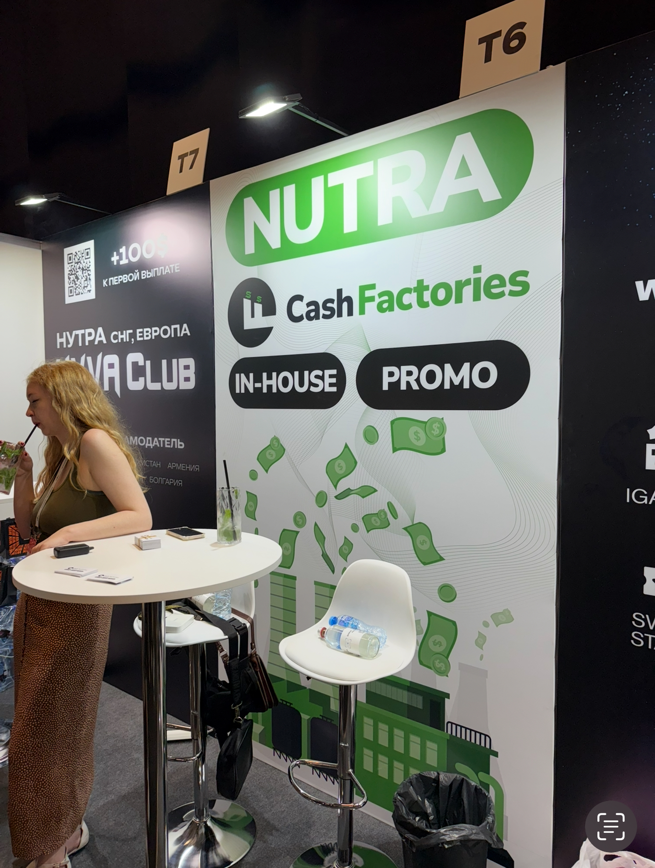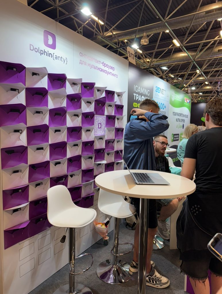 В самом дальнем от входа в павильон уголке мы находим: WWGroup (партнерская программа по iGaming и Betting, внутренний медиабаинг, сервис аренды мобильных приложений), FlexCard (виртуальные карты), 100HP (геймдев-студия), QQbetPartners (казино-платформа), PaykassmaPartners (мульти-вертикальная партнерская сеть), AIO (трекер), Dolphin {Anty} (антидетект-браузер), 3SNET (CPA-сеть), Stepmode (прямой нутра-рекламодатель) и Your Loot (прямой рекламодатель iGaming).