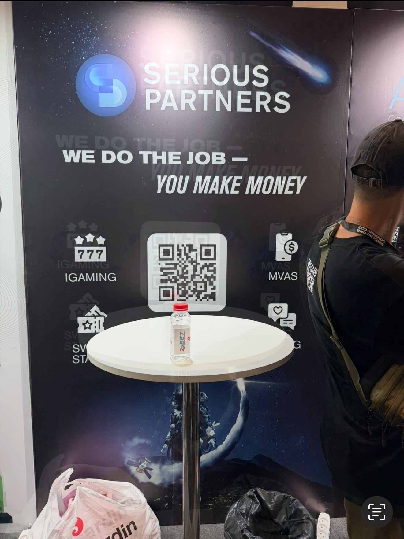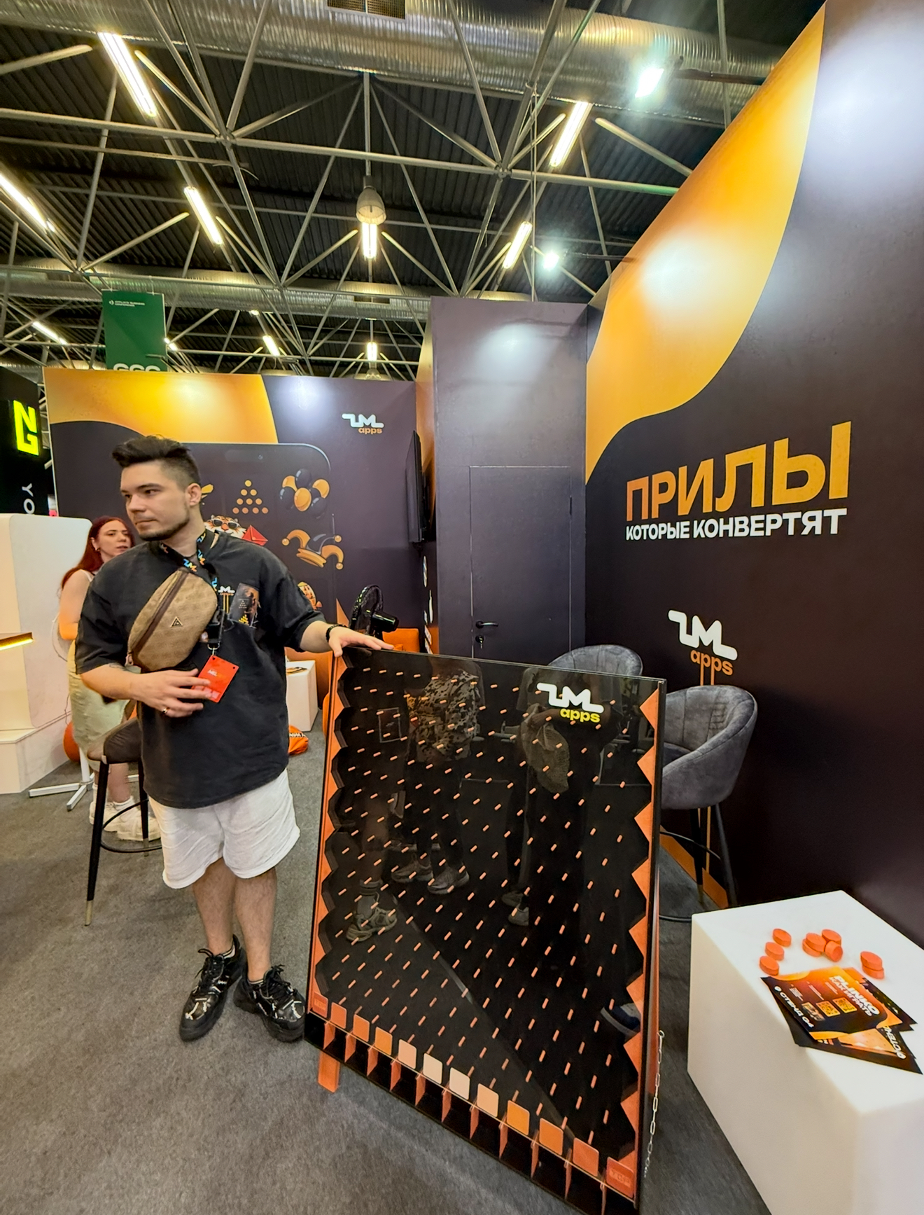 NutraLeads спонсировали зону подкастов, где записывали интервью. На фото – великолепный Mr.Monty, Денис Знаменский, Head of Performance Marketing в PIN-UP GLOBAL. Он настолько же великолепный, насколько прекрасен мерч из новой коллекции PIN-UP. 1,5 года посещения конференций так и не позволили мне прикоснуться к отвязному мерчу от PIN-UP, но Денис пообещал это исправить и заслать пак мерча из новой коллекции. Жду его так же сильно, как появление стенда PIN-UP на следующем G GATE CONF.