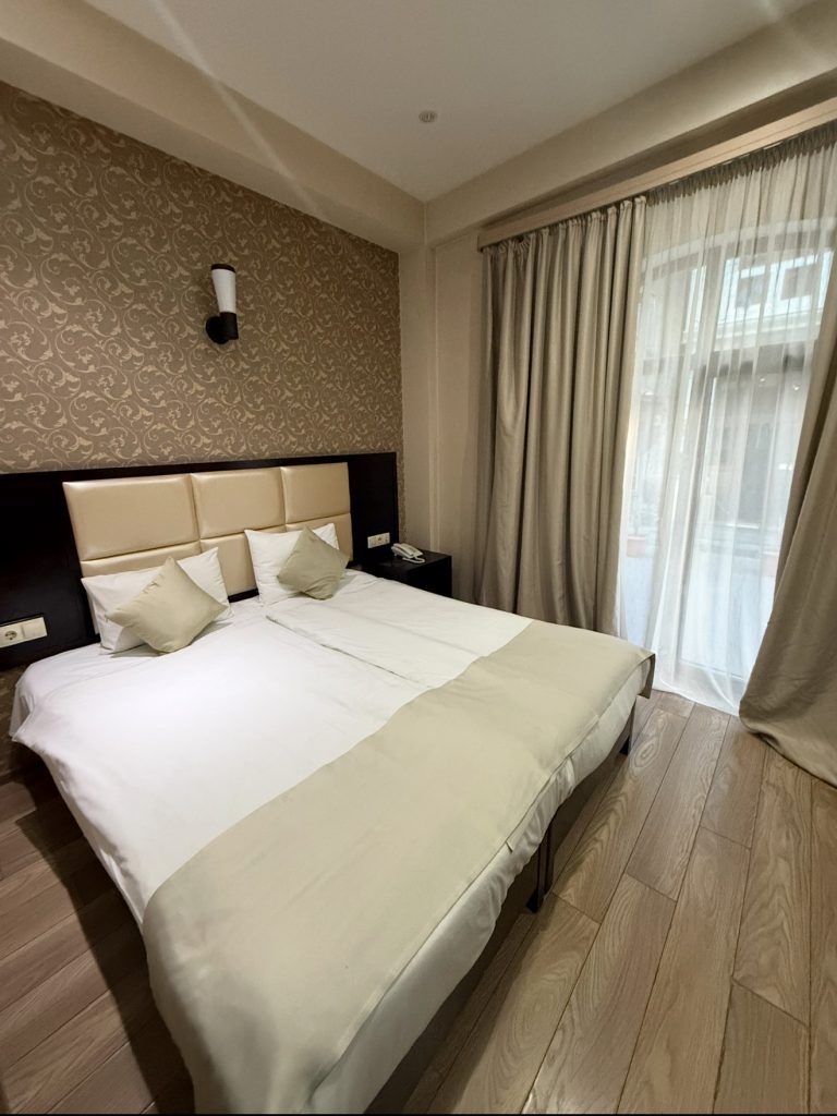 Мой выбор пал на 4-х звездочную гостиницу Tbilisi Inn в Авлабари. За 7 дней проживания без еды и дополнительных услуг я отдал всего 13 000 рублей. Не в день, всего! Горячо рекомендую вам данный вариант размещения при поездках в Тбилиси: есть чисто, спокойно, есть банк и обменник прямо через дорогу, метро и автобусная станция в 2 минутах ходьбы, рынок – в 3, Старый город – в 5, трансфер в/из аэропорта, но что не менее важно, здесь работает потрясающий персонал! Говорят и на русском и на английском. Очень приветливые люди. которые готовы помочь на любом этапе. Когда я приезжал после конференции в отель и мне нужно было через час быть на другом мероприятии, мне помогали с доставкой еды прямо в номер (без дополнительной платы), и о боже, как это спасало! Оплатить кстати проживание рублевой картой можно напрямую через сервис Яндекс.Путешествия. Не поленитесь и найдите промокод – так будет еще выгоднее.