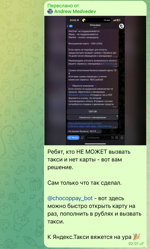 Мне нужно было быстро открыть виртуалку с пополнением через рубли и меня мало волновало все остальное – лишь бы вязалось. Дважды ChocoPay выручал меня при заказе такси, но больше всего он помог уехать в 3 часа ночи с AfterParty, которое проходило в загородном яхт-клубе Tbilisi Yacht Club – Restaurant La Cote. Нельзя было вызвать такси за наличку, только с очередью из заказов и с оплатой по карте. У меня уже была карта, ее нужно было только пополнить. Весь круг с пополнением и оплатой в Яндексе занял ровно 5 минут. К Яндексу привязалась карта с 1 раза, код авторизации пришел в Telegram.