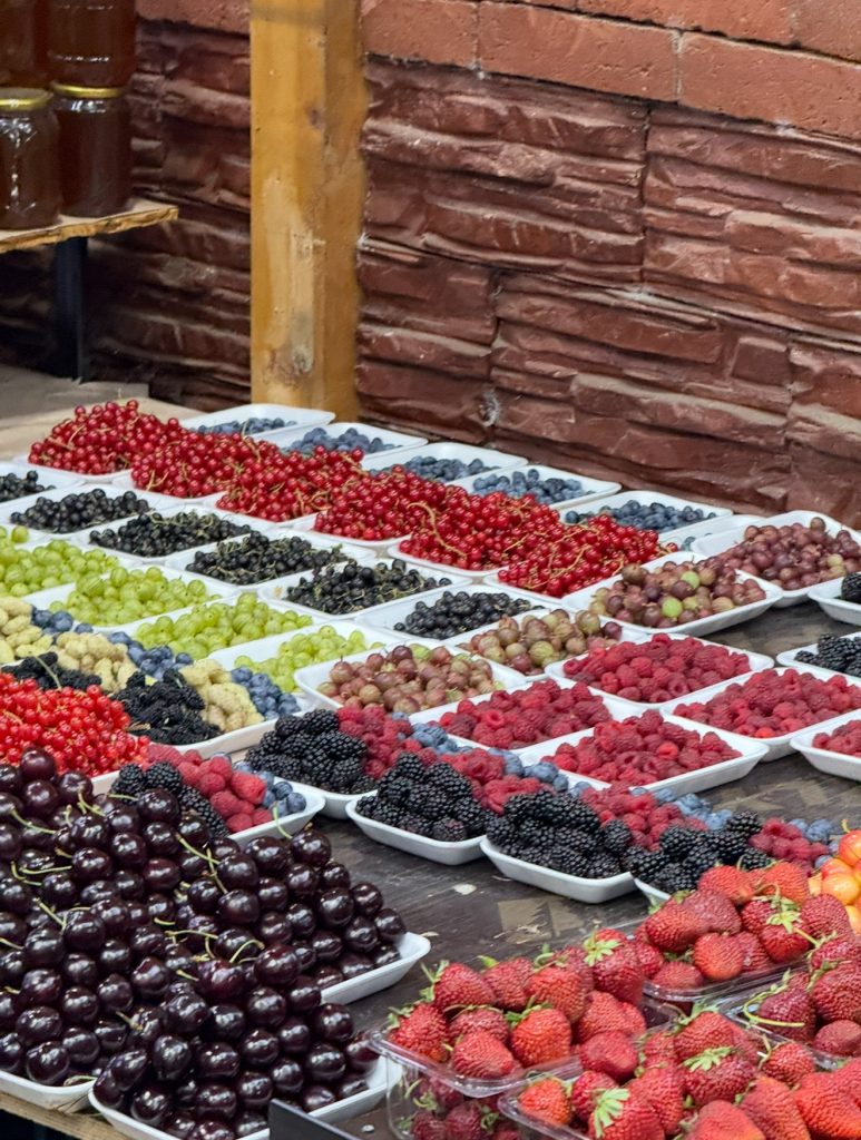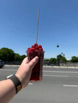 А вот фрукты и ягодки на улице стоят не прямо таки дешево – я отдавал по 25 лари (720 рублей) за стаканчик как на фото. Было вкусно, видно, что все “свое”, с “дачи”, но дешевле брать фрукты и ягоды на рынках. Один из них находится в Авлабари, вот здесь.