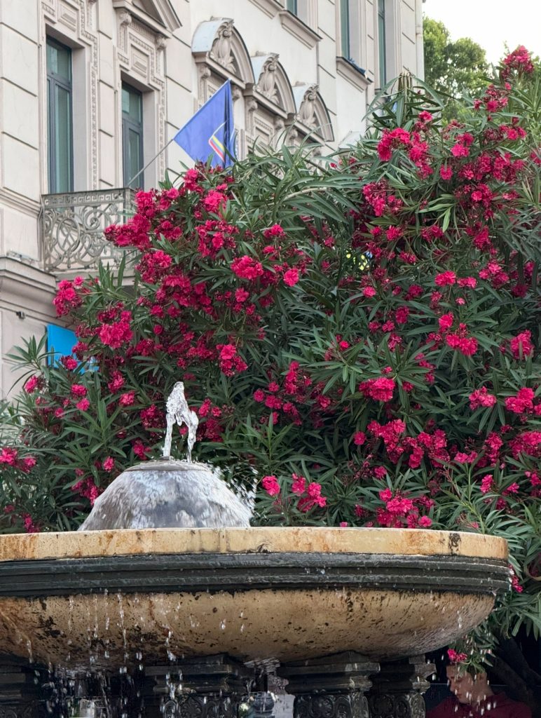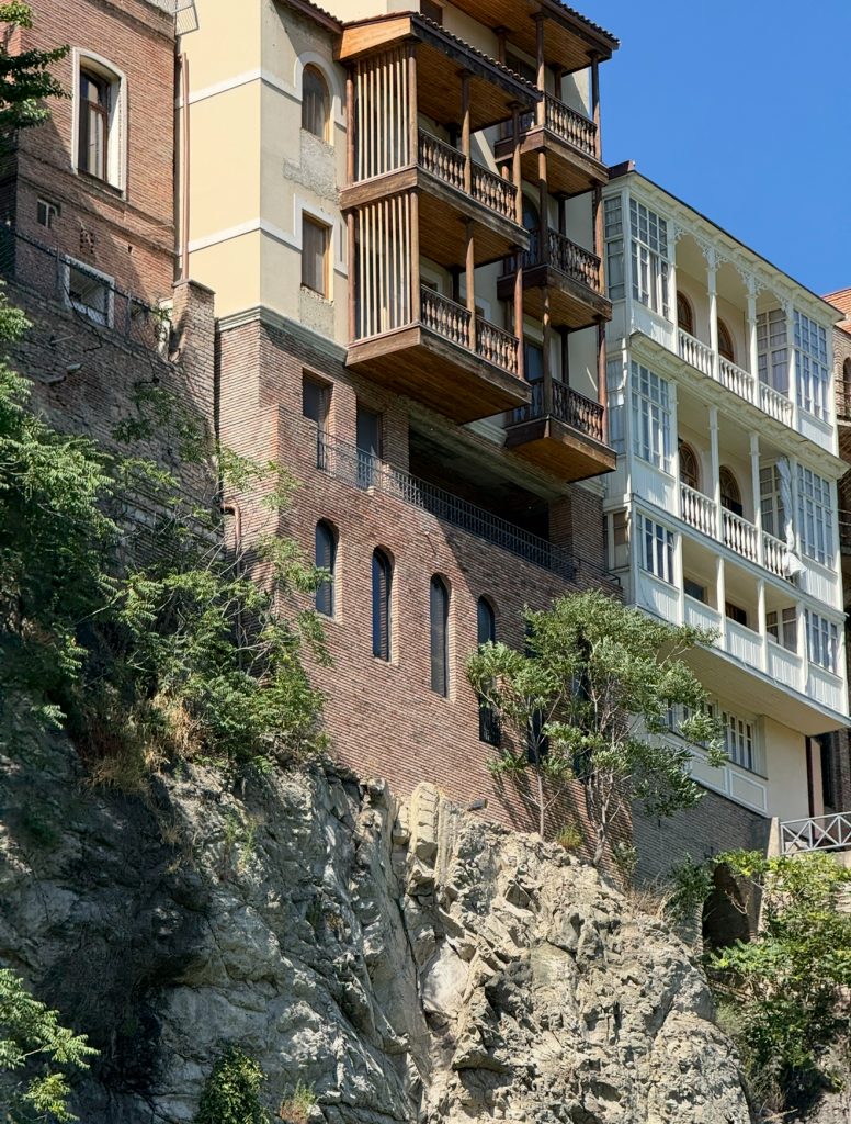 Внутри царит приятная погода – легкий ветерок с гор спасает даже от самого знойного солнца. Улочки небольшие, извилистые, холмистые (передайте своим икроножным мышцам “привет”, если собираетесь сюда приехать), много где вымощены брусчаткой, на каблуках здесь будет тяжело – сам не проверял, но охотно в это верю. В центре – красивые исторические здания, часто встречаются творения Зураба Церетели в самых неожиданных местах. Повсюду вас поджидают цветы, клумбы, нетронутые вековые деревья и уютные террасы ресторанов на любой вкус. По окраинам города расположены спальные районы и новостройки. Они не менее красивы, но “не то”.