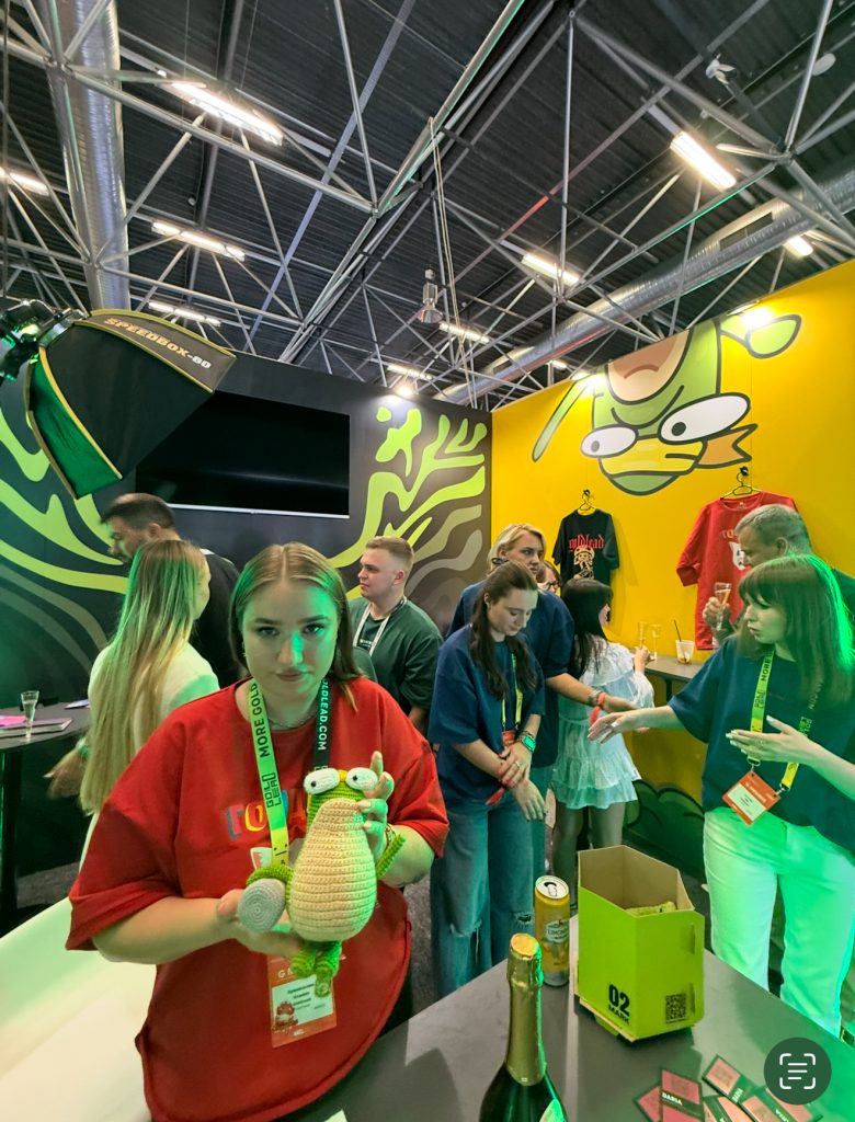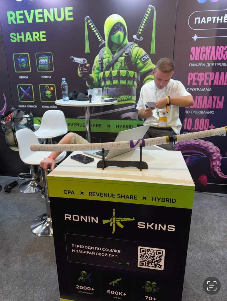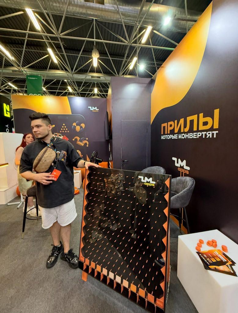 Честно сказать, когда я сюда добрался на конференции, я был уже уставший как черт, да и люди на стендах – тоже. Мы классно пообщались со всеми, но больше всего меня зацепила футболка “Все мы чьи-то лиды” от MetaCPA, розовые звездочки от Gamble Grow и катана на стенде у Ronin Skins.