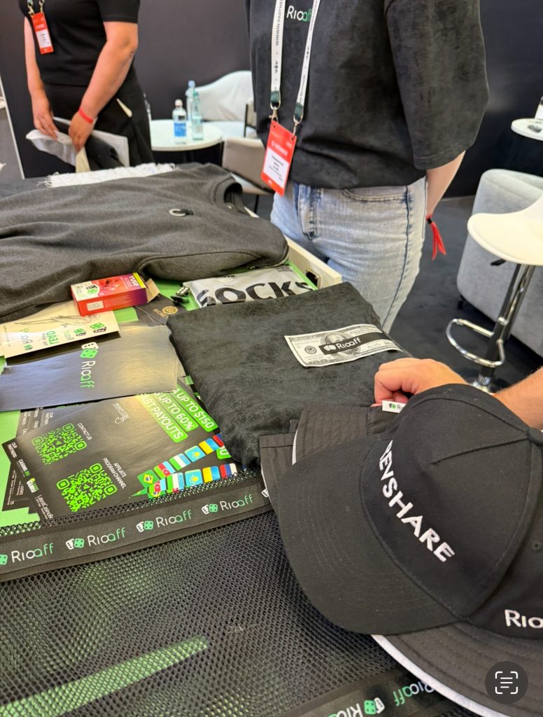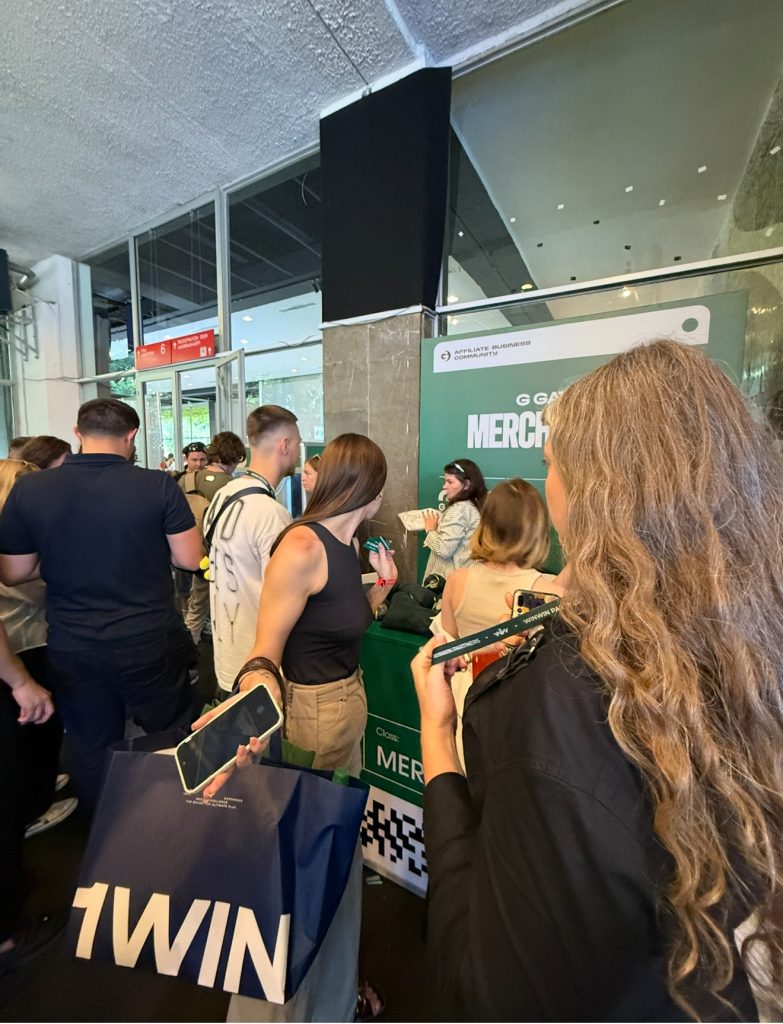 Зацепило оформление у AdCombo, очень сожалею, что так и не удалось взять интервью у Павла Слепкова – надеюсь, что в будущем мы это исправим. Понравился мерч и стенд у RioAff, футболку с долларом уже ношу на себе. GoldLead меня порадовал своим маскотом и кислотным дизайном, а на желтую футболку с покер-фейсом, которую мне дали в качестве мерча, очень позитивно реагируют люди на улице (и я – тоже). INSIDE с красным бархатным видно было издалека – в первый день он напоминал о грудещем “арбитражном Оскаре”, G GATE AWARDS. SkyLead сделал одну из лучших брошюр на конференции – все четко и по делу. 22Bet Partners выделялись расцветкой и формой своих прекрасных дам. ComboCards давно меня радует своим подходом к дизайну и инновациям, с Димой Борисовым хочет тоже сделать специальный репортаж. WinWin Partners поразили мое сердечко “дорогим” сочетанием LED-светильников, зеленого бархата и мрамора – богато и солидно, а главное – внушает доверие. Winline доставили мне визуальное наслаждение – от удачного сочетания фирменных цветов из айдентики до качественного мерча и привлекательных девушек, которые удачно заманили меня к себе на стенд. Ну и конечно же, 1win: стенд причудливой геометрии словно по чертежам Захи Хадид, новая переосмысленная коллекция мерча, который я уже ношу на самые важные события в своей жизни и филигранная работа менеджеров с гостями конференции.
