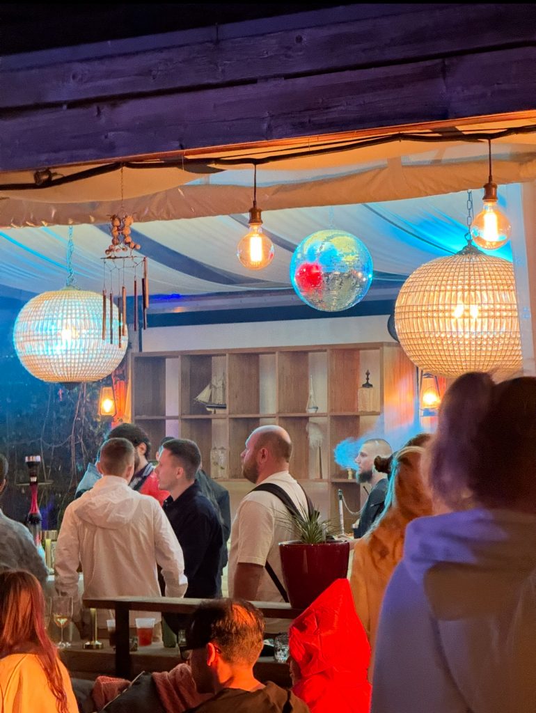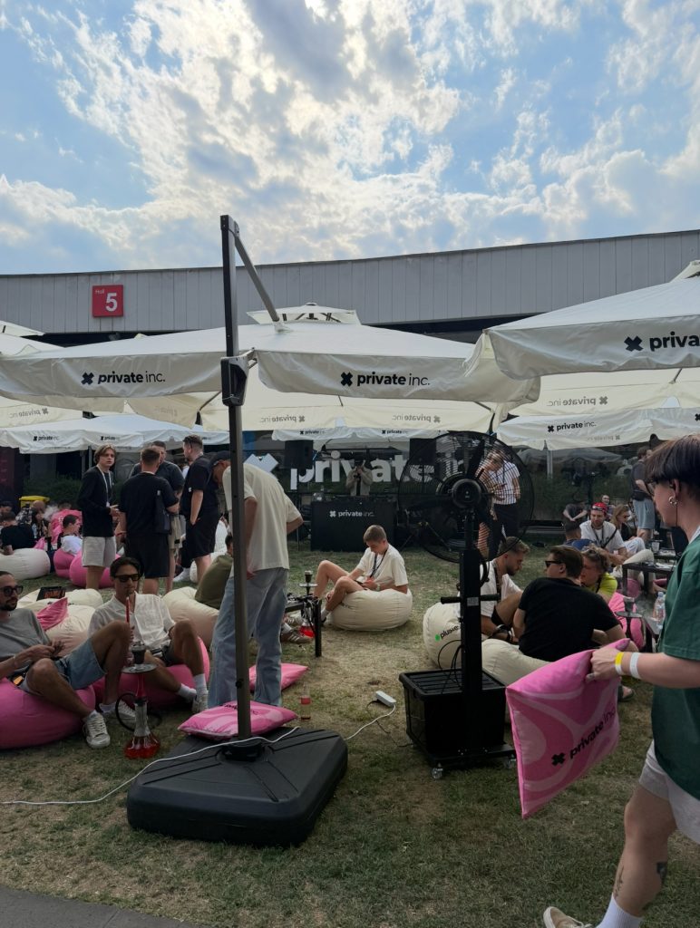 Освежив разум и тело, уставшие от нетворка, но не сломленные тягостью сумок с мерчом, мы выходим на улицу с другой стороны павильона. Здесь в тени деревьев скрываются от посторонних глаз 3 последние зоны, которые нам нужно обойти, для того, чтобы гордо заявить: “Теперь я обошел весь G GATE CONF в Тбилиси!”. DSRCM (арбитражная команда) предлагала гостям оседлать быка под бутылочку холодного пивка. Соседствующие с ними private.inc (медиабаинговая компания в iGaming и E-commerce вертикалях) под авторский dj-set колдуют над крепкими, так любимыми арбитражниками, кальянами. Последняя зона в нашем списке – чилка от PlusTeam (арбитражная команда в iGaming и Crypto). Пьем последний коктейль, даем спине отдохнуть на зеленом пуфе и направляемся в отель собираться на AfterParty.