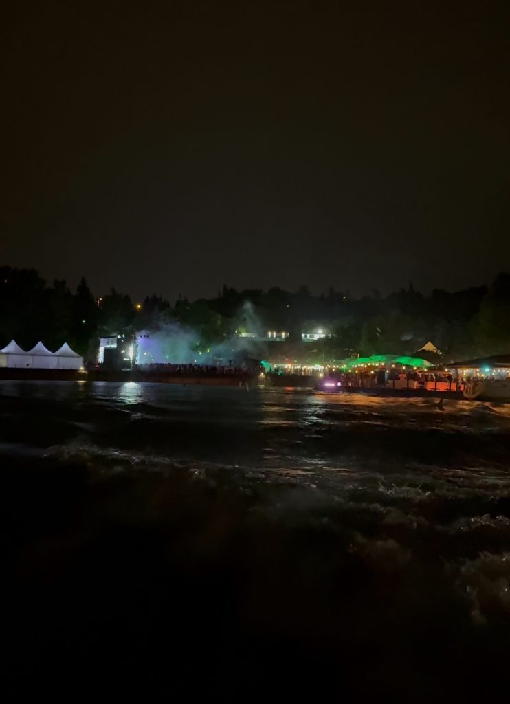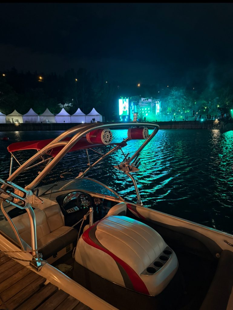 На сцене для нас выступили Aarne, Big Baby Tape и T-Fest. Для владельцев билетов категории Ultima и выше было предусмотрено отдельное развлечение – прогулка на лодке по акватории Тбилисского водохранилище и возможность кружить в такт музыке на лодке в гавани яхт-клуба. Когда я говорю, что подпортившаяся погода лишь добавила красок, я вовсе не иронизирую: когда еще в своей жизни вы ночью в ливень со шквалистым ветром будете нестись в лодке по Тбилисскому морю под живое выступление Big Baby Tape? Для меня такая активность стала одним из ярчайших флешбэков в приятном смысле этого слова.