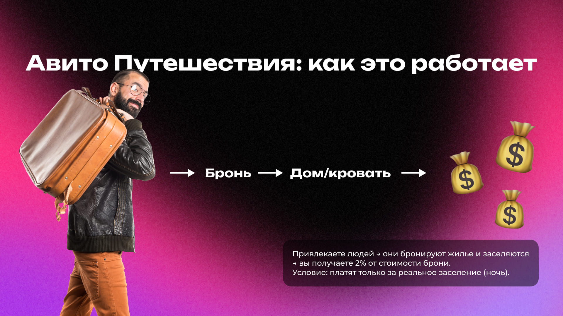 Авито Путешествия. Это самый простой и понятный для арбитражника оффер. Вы привлекаете людей, которые хотят снять квартиру, дом или апартаменты посуточно. Ваш клиент бронирует жилье, заселяется — вы получаете вознаграждение. Партнерка работает по модели CPA (оплата за действие). Сейчас это один из самых доступных офферов Авито, который можно найти в партнерских программах типа Leads.su.