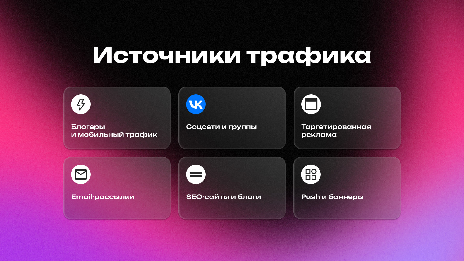 - SEO-трафик (сайты и блоги).