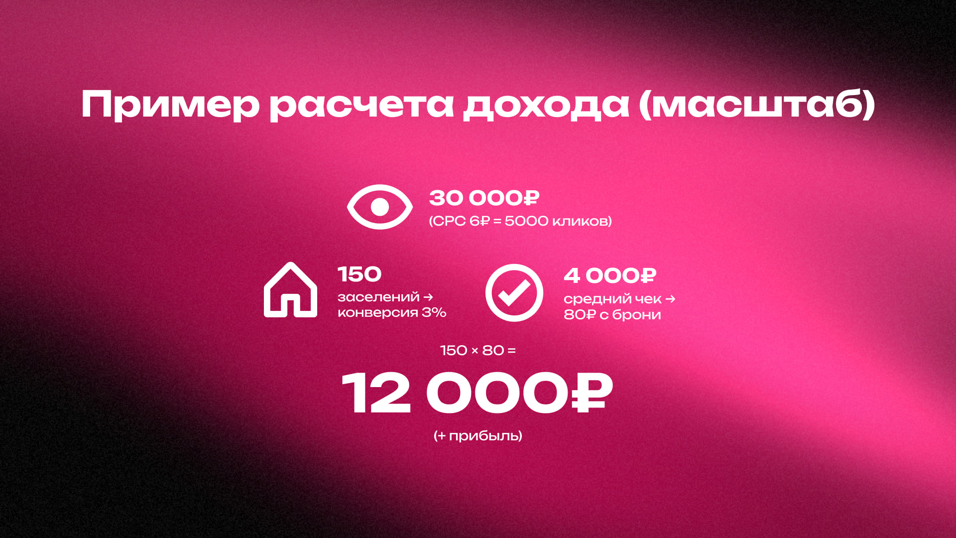 Доход: 150 * 80 = 12 000 рублей.