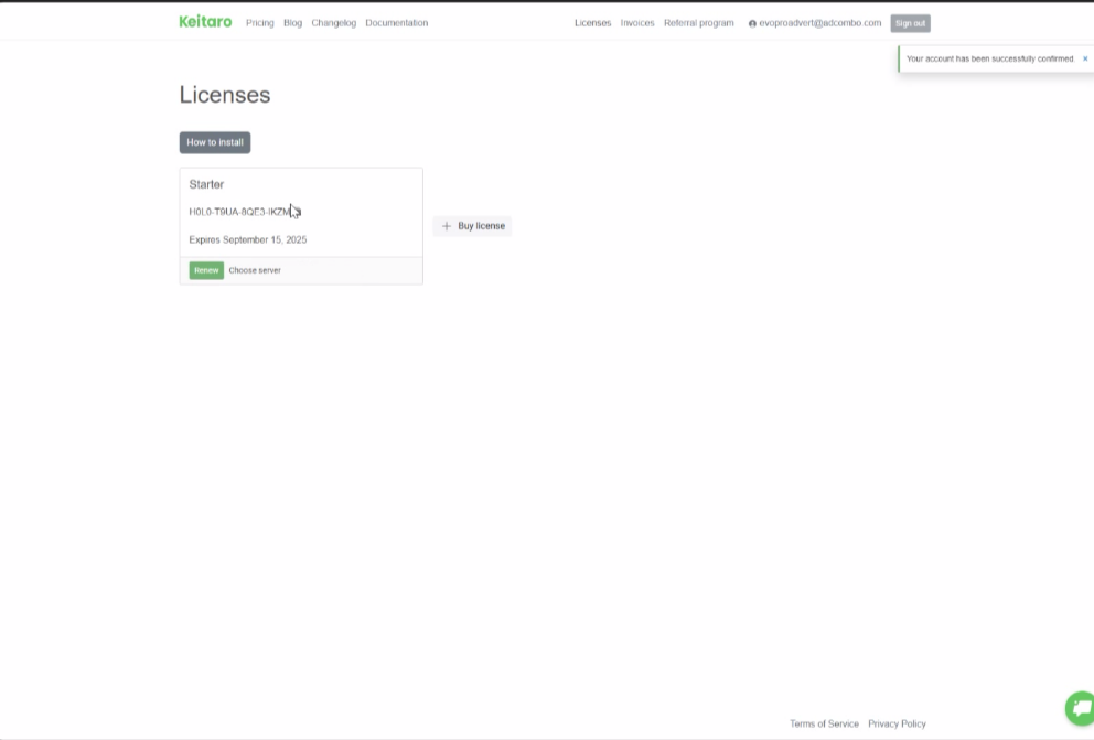 На сайте Keitaro код активации лицензии будет доступен в личном кабинете, после регистрации.