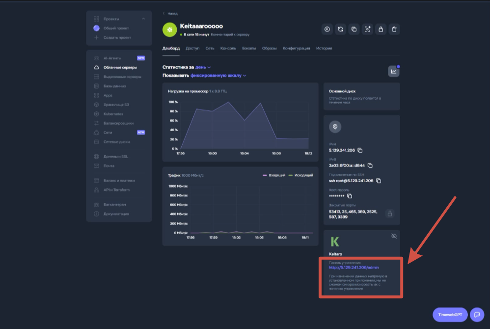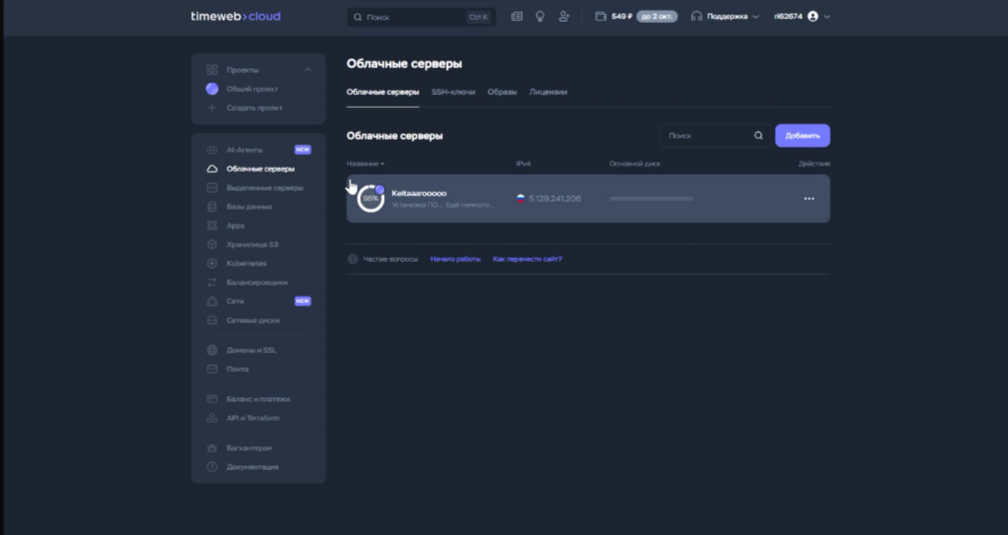 Возвращаемся в панель управления хостингом Timeweb Cloud.