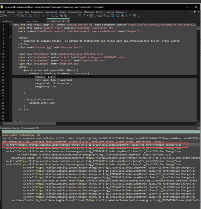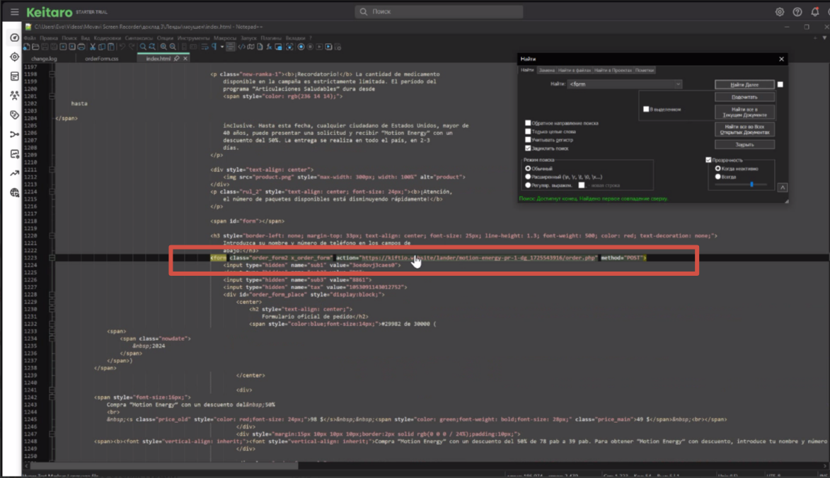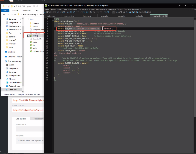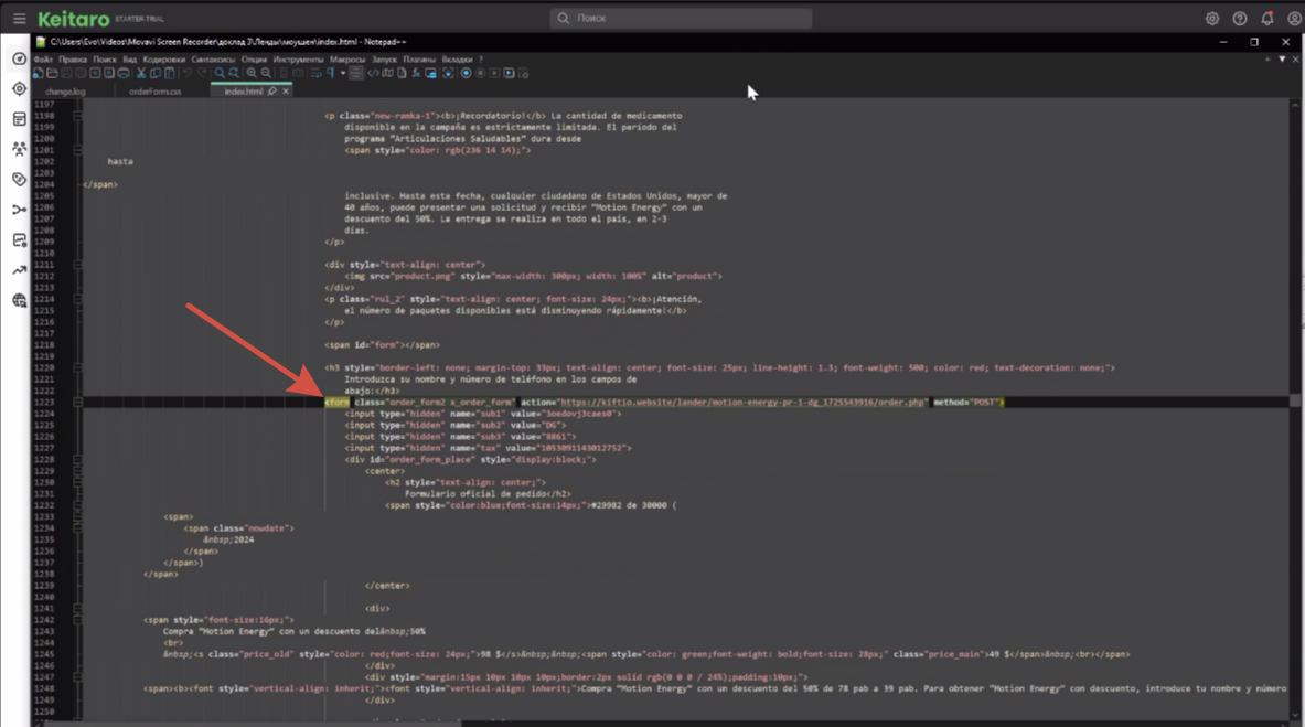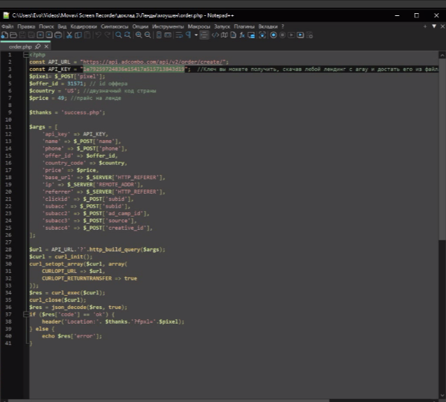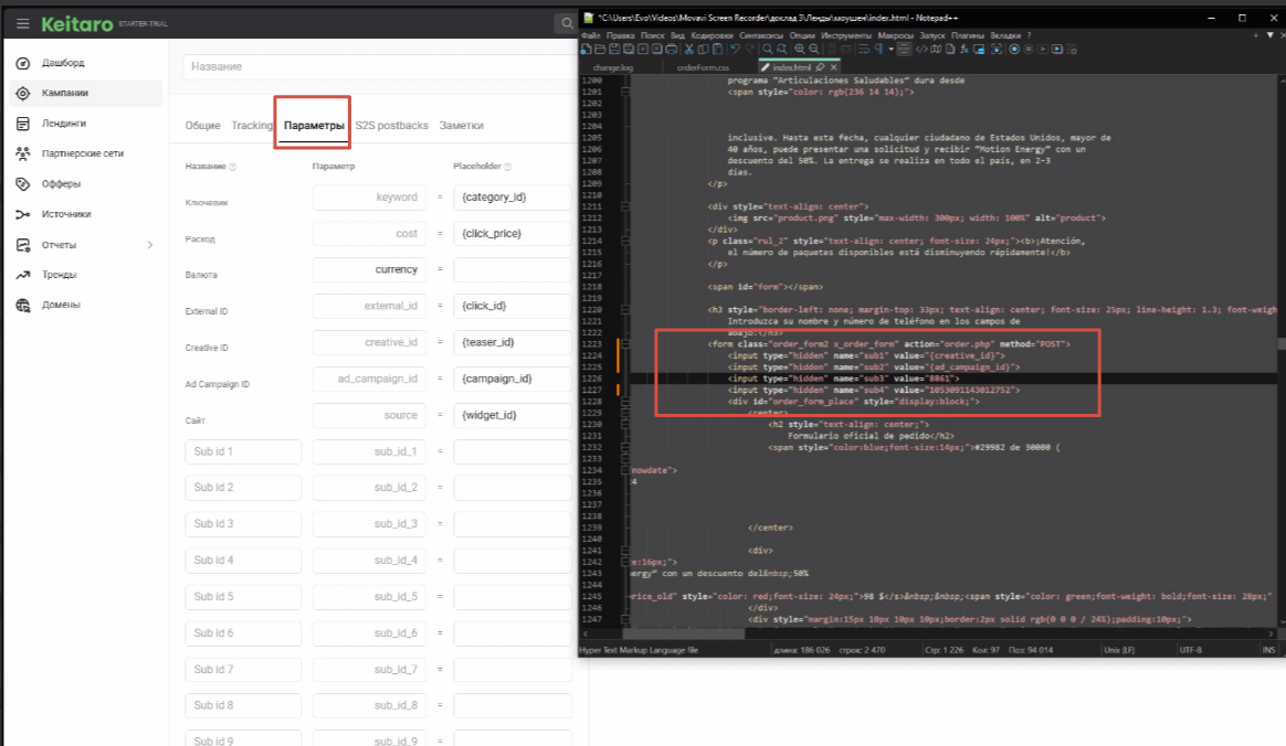 Разберем интеграцию прелендинга в трекер с помощью Notepad++.