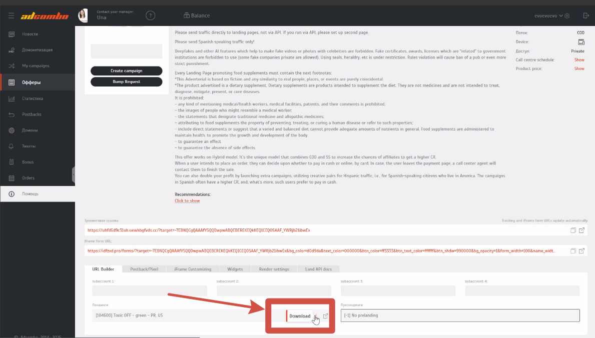 Можно протестировать формат прелендингов VSL, он показывает себя лучше статичных прокл. Найти готовые VSL можно внутри AdCombo.