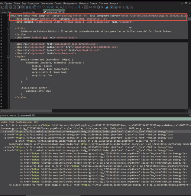 Шаг 6. Чистим прелендинг от скриптов и ссылок