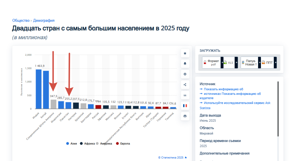 Например, в США и Пакистане примерно одинаковое количество населения.