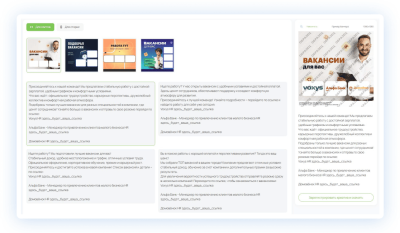 - не нужно искать дизайнеров, писать тексты вручную или подгонять размеры под площадку;