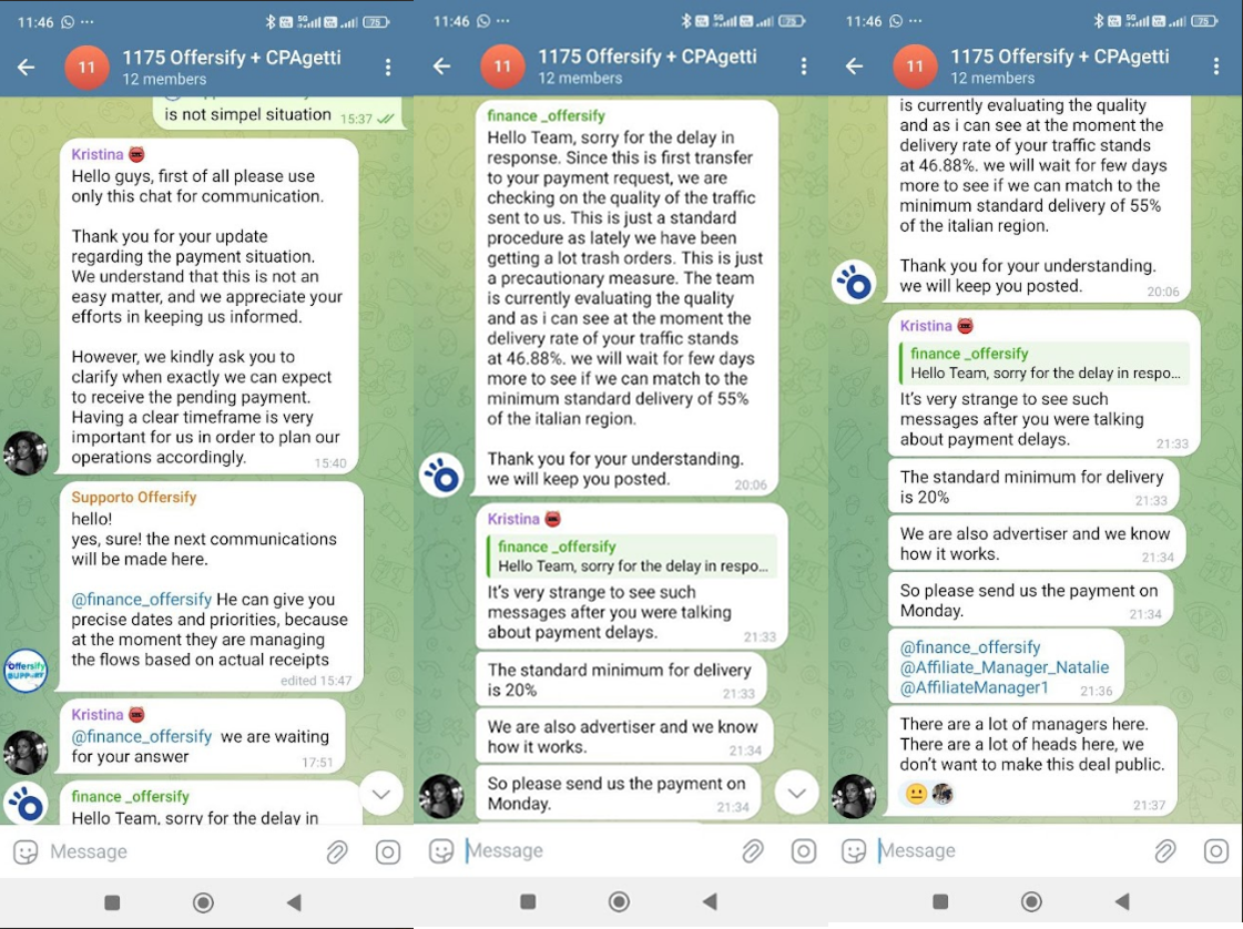 Все три истории — частички одного пазла, складывающегося в неприглядную картину. Offersify принимает трафик, копит долги, а когда сумма становится ощутимой, объявляет партнеров фродерами.