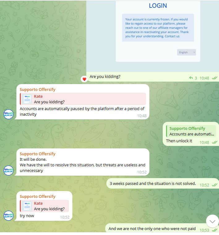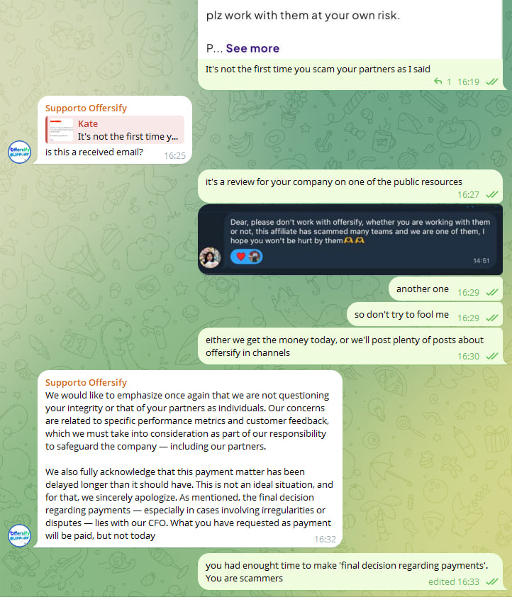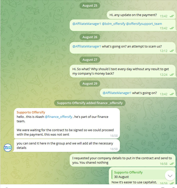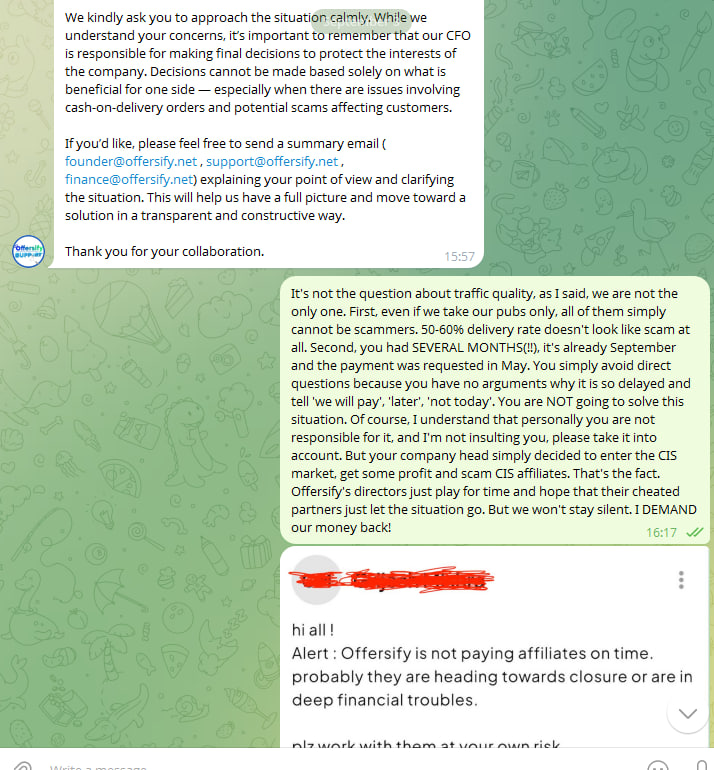 То, что делает Offersify, — не «неудачный опыт сотрудничества» и не разовые сбои. Это выстроенная схема. И каждый новый кейс подтверждает, что перед нами не партнер, а системный скамер, скрывающийся за европейским фасадом.