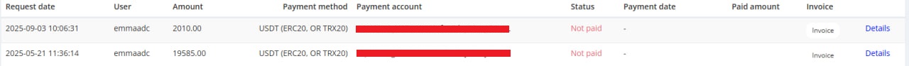 Первую заявку на вывод $1 005 оформили 1 сентября, но даже к 10 сентября выплата не поступила. Задержку объяснили графиком платежей — дважды в месяц 15 и 30 числа. Хотя первоначально сообщили, что выплаты делают 1 раз в 10 дней.