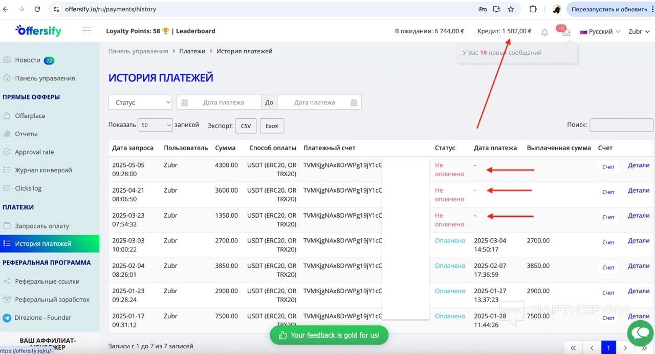 По мнению редакции, главная проблема в том, что Offersify позиционирует себя как COD-рекламодателя, но на деле подменяет саму суть этого формата. Delivery Rate — это головная боль рекламодателя, а не вебмастера. В нормальных сетках риск низкого выкупа учитывают заранее: снижают ставку, отключают поток, меняют условия. Но никто не пересматривает договоренности задним числом, когда трафика налито на сотни и тысячи евро.