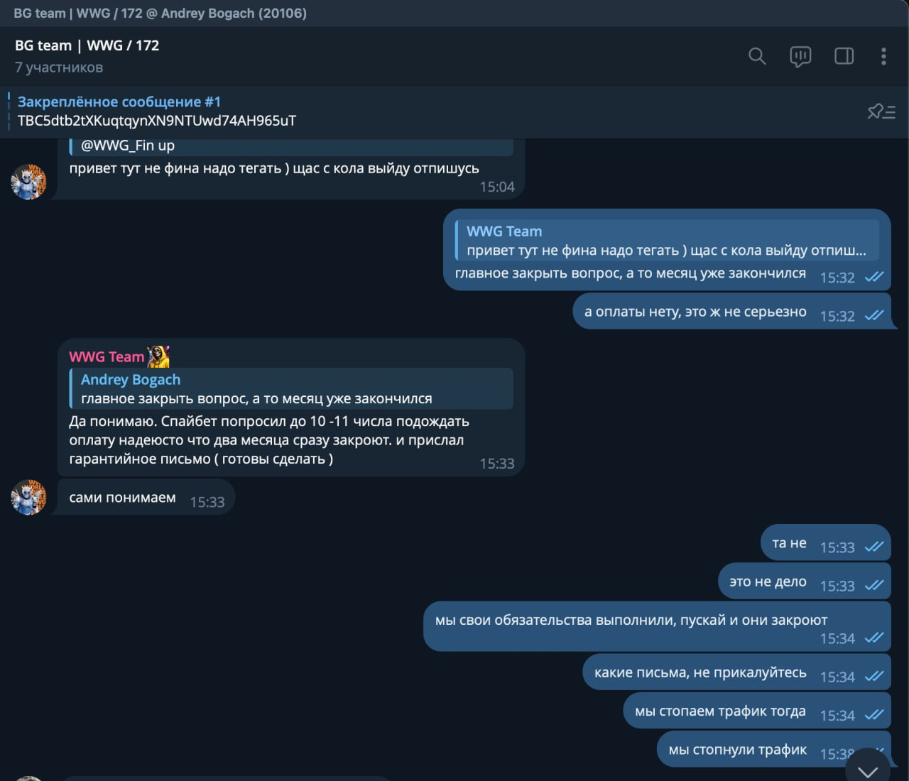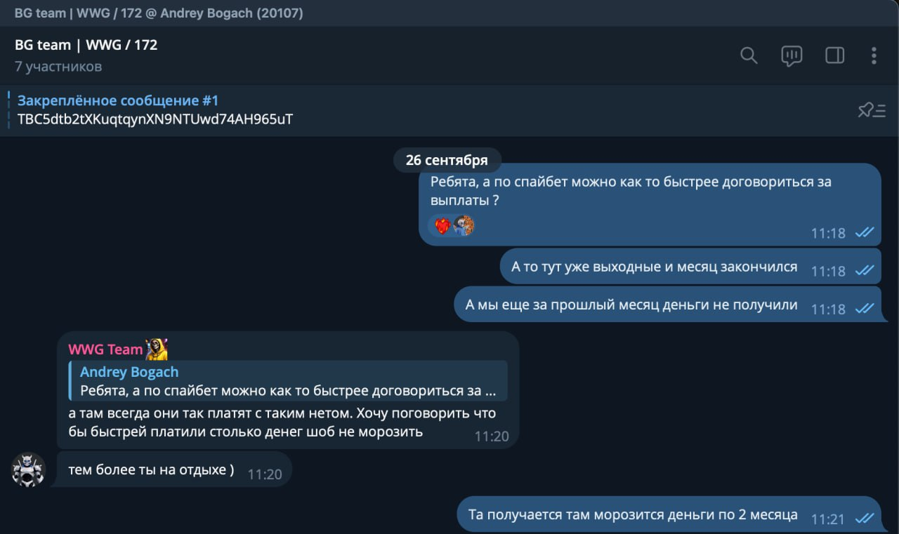 Главный аргумент: «У нас перед командой BG обязательств нет и никогда не было». По логике рекла, раз контракт подписан с WWG, пострадавшей команды байеров просто не существует. А любую попытку тимы заявить о проблеме публично рекламодатель называет «шантажом».