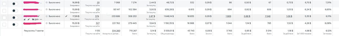По FB как можете видеть использовали подход мелких бюджетов. Благо зацеп был хороший и позволял брать количеством. Выше 50 долл не разгонялись, брали только количеством.